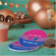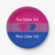 Paper plate with the bisexuality pride flag with little hearts in the centre of the design. Pink, purple, and blue flag of the bi pride movement; with an editable text field for your name or message