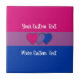 Ceramic tile with the bisexuality pride flag with little hearts in the centre of the design. Pink, purple, and blue flag of the bi pride movement; with an editable text field for your name or message