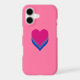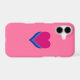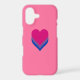 Phone case for Apple iPhone 15 with hearts design in colors of bisexuality; pink, purple and blue rainbow love bi pride design