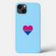 Design with hearts design in colours of bisexuality; pink, purple and blue stripes bi pride flag, rainbow love bi pride design on blue background