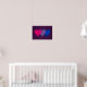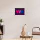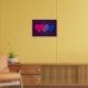 Poster with hearts design in colours of bisexuality; pink, purple and blue stripes bi pride flag, rainbow love design on purple background