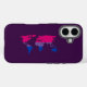 Design with map of world in the colours of bisexuality pride flag with rainbow stripes of blue, pink and purple; bi pride design on purple background by pinkbrickroad