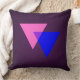 Throw pillow with pink and blue triangles bisexuality symbol, on purple background