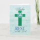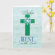 When your Bishop is not feeling well, this card will bring him cheer and help him to feel better. A green cross is at the centre with leaves and greenery softly in the background. A blue flower sits in the middle of the cross. Encourage him to rest in the Lord.