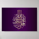 A beautiful Islamic calligraphy of Bismillah al-Rahman al-Rahim in a metallic stzled design on a very dark rpurple background. This print is available on poster, as canvas print and on many other products, which are beautiful gifts for Muslims.