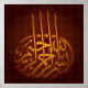 A beautiful Islamic calligraphy of Bismillah al-Rahman al-Rahim in dark red and yellow colour on a very dark red & brown background, which is decorated with and Arbabic ornate star pattern. This print is available on poster, as canvas print and on many other products, which are beautiful gifts for Muslims.