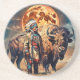 This stunning graphic captures a powerful and symbolic moment, featuring a Native American chief standing proudly next to a majestic bison under the glow of a radiant full moon.