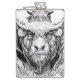 Bison Buffalo Animal Wild Nature Illustration Line Hip Flask