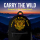A detailed illustration features a bison buffalo head surrounded by mountains, trees, and a flowing river. The background showcases a sun setting behind the peaks, creating a serene and natural environment. It captures the essence of wildlife.