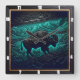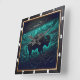 Bison Buffalo Tooled Teal Bison Square Wall Clock