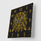 Bison Design With Feathers and Geometric Patterns Square Wall Clock