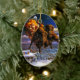 Bison Pulling Santa Claus Ceramic Tree Decoration