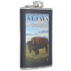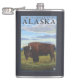 Bison Scene - Chitina River Basin, Alaska Hip Flask