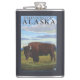 Bison Scene - Delta Junction, Alaska Hip Flask
