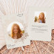 An elegant graduation announcement design featuring a photo of your graduate encircled by a floral border of rose gold foil lilies and foliage on a warm off-white ivory background. Personalise with your graduate's name, school, and graduation year. Add a personal message to the back, along with an additional photo.