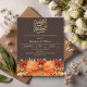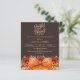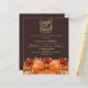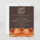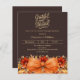 A bistre, dark brown background colour. Decorated a large orange bow and fall flowers. Personalise and add the party details.