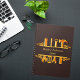 I have many of these notebooks in my home office and use them for keeping track of colors and design ideas for my Zazzle shops. They're a perfect size for my smaller desk and for popping into my tote bag if I need to take notes somewhere else. I was really happy with the print job on the glitter and metallic foil elements. I had shied away from designing with glitter because I wasn't sure it would look realistic in printer's ink. Since receiving my notebook, I've added more glittery and shiny surfaces onto my designs, knowing they'll look great when they're printed.