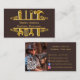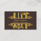 A bistre, dark brown background, with faux gold tools. Personalise and add your business name and a text on front. Golden letters