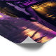 Bit Coin Cowboy Poster Art. Ai generated and Adobe Photoshop finished. Night time cowboy dressed in purple and gold with chaps and gold pants overlooking a neon lighted street.