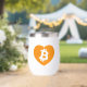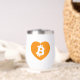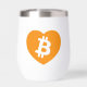 Instead of being placed in the orange circle, the bitcoin logo on this tumbler is positioned in a orange heart.