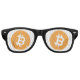 Crypto party glasses with Bitcoin symbol.