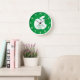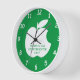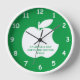 Bitten apple silhouette custom round wall clock . Personalise with your own text or funny quote. An apple a day keeps the doctor away. Green or custom colour background. Trendy home decor for kitchen, school, class room, bedroom, office, waiting room, dentist, cafe, bar etc.