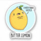 Bitter Lemon Funny Fruit Pun features a sour lemon who's got a bitter chip on his shoulder. Funny Pun gift for family and friends who love to tickle your fancy with fruit puns.