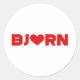 The name Bjorn with the letter o replaced with a red love heart. The colours can be changed.