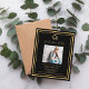 Black background, decorated with a golden frame, and a graduation cap. Personalise and add a photo name and details. Golden text.