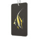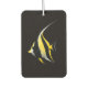 Black 4 Luxe tropical fish air freshener design, Moorish Idol artwork edition, realistic marine life illustration, sleek black luxury car accessory, refined nature inspired décor item, premium dark aesthetic finish, artistic automotive scent concept, exotic fish illustration artwork, gallery quality artistic finish design, radiant yellow and white inspired motif, elegant minimalist art concept style, subtle luxury inspired finish, crisp detailed tropical fish portrait, timeless artistic black background, high quality fragrance car ornament, sophisticated ocean lovers auto gift, luminous aquatic contrast inspired artwork, aesthetic balance inspired design edition, collectable Black 4 Luxe creation, premium underwater inspired car accessory.