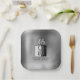 Simple, modern, elegant, stylish, metallic silver black and white, personalised 50th Birthday paper plate. You can easily change the age number!