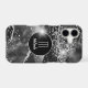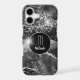 Your monogram and your name are in gleaming silver on a black circle banner at the centre of this phone case. The banner is framed in thin silver and placed on a sparkling faux diamond and agate black background with star lights scattered about. Elegant!