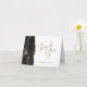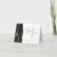 This elegant modern wedding thank you card features a black watercolor agate border trimmed with faux gold glitter. The customisable gold-coloured text combines the words "Thank You" in handwriting script and the names of the bride and groom in italic font on a white background.