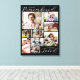 Always Remembered Forever Loved canvas print with a photo collage of nine photos of your loved one. Pick your favorite photos from their wonderful life well lived, perhaps photos of them and their spouse or them and their children or grandchildren. Upload photos of your loved one and their pets or your loved one practicing their hobbies. With this keepsake you can remember every day what a fantastic life your loved one had. This canvas print is printed without your loved one's name, showing only photos and the inspirational words against a black background.