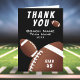 Black American Football Thank you Coach Card. Football thank you coach card with coach name, team name, year, player`s name and number. Great thank you card for the football team coach!
