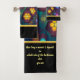 Personalise romantic modern Contemporary gold foil texture abstract lanterns in a holiday fabric in multi colours monogram bath towels.With a funny saying of.