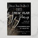 A sleek and elegant invitation with a minimalist modern design. The background is divided into bold blocks of black and beige, creating a sophisticated contrast. The title 'New Year Party' is displayed in a striking, bold font, while the event details are written in clean, simple typography. Subtle accents, like sparkling stars or gold confetti elements, add a festive touch. The overall design exudes style and class, perfect for a chic New Year’s celebration