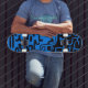 Black and blue gutsy skateboard, extreme sports skateboard, WitchesHammer skateboard, African warrior skateboard , Surfer skateboard, tribal Skateboard, Virginia Vivier designer skateboard.