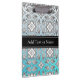 Black, aqua blue and White Mandala Zen Personalised clipboard
