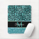Black and Blue Teal Leopard Girly Glam Monogram Mouse Pad