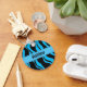 A modern design featuring a black and blue zebra stripe background. A band of blue accents name. Customise as desired.