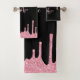 Black and Blush Pink Glitter Sparkle Drips Bath Towel Set