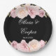 Black and Blush Pink Roses Chic Wedding Paper Plate