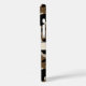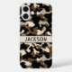 Customise this black and brown camouflage iPhone 16 plus case with your name in a trendy modern CAP font in black on cream. It's masculine and perfect for your favourite military, hunting, country or outdoorsman!