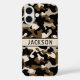Customize this black and brown camouflage iPhone 16 case with your name in a trendy modern CAP font in black on cream. It's masculine and perfect for your favorite military, hunting, country or outdoorsman!