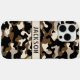 Customize this black and brown camouflage iPhone 16 pro max case with your name in a trendy modern CAP font in black on cream. It's masculine and perfect for your favorite military, hunting, country or outdoorsman!