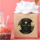 Make a lasting impression with this elegant and exotic product label design featuring shimmery gold hawaiian flowers and palm leaves on a black background. A cool palm leaf shadow matching to the shimmery dark brown border frame.