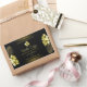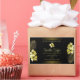 Make a lasting impression with this elegant and exotic product label design featuring shimmery gold hawaiian flowers and palm leaves on a black background. A cool palm leaf shadow matching to the shimmery dark brown border frame.