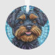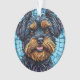 Colourful digital artwork of a terrier with expressive dark brown eyes and vibrant fur, surrounded by a decorative mosaic-style background. Represents loyalty, charm, and an artistic expression of canine design.