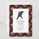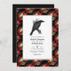 Crimson red , black and gold gothic wedding invitation featuring a raven and a dramatic rose pattern.